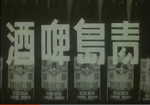(字幕:青島啤酒,是遠(yuǎn)東最大的青島啤酒廠制造)